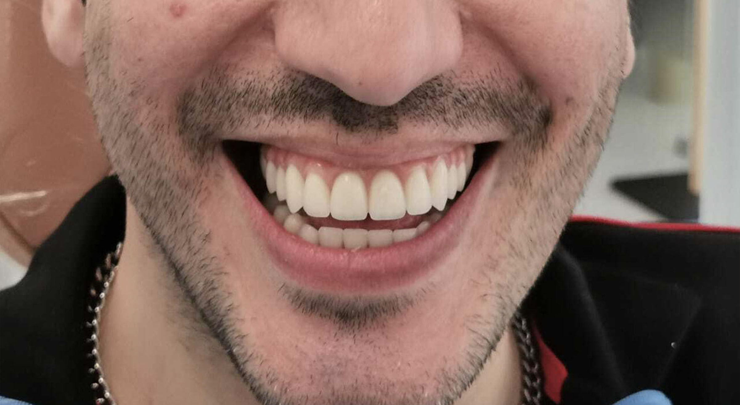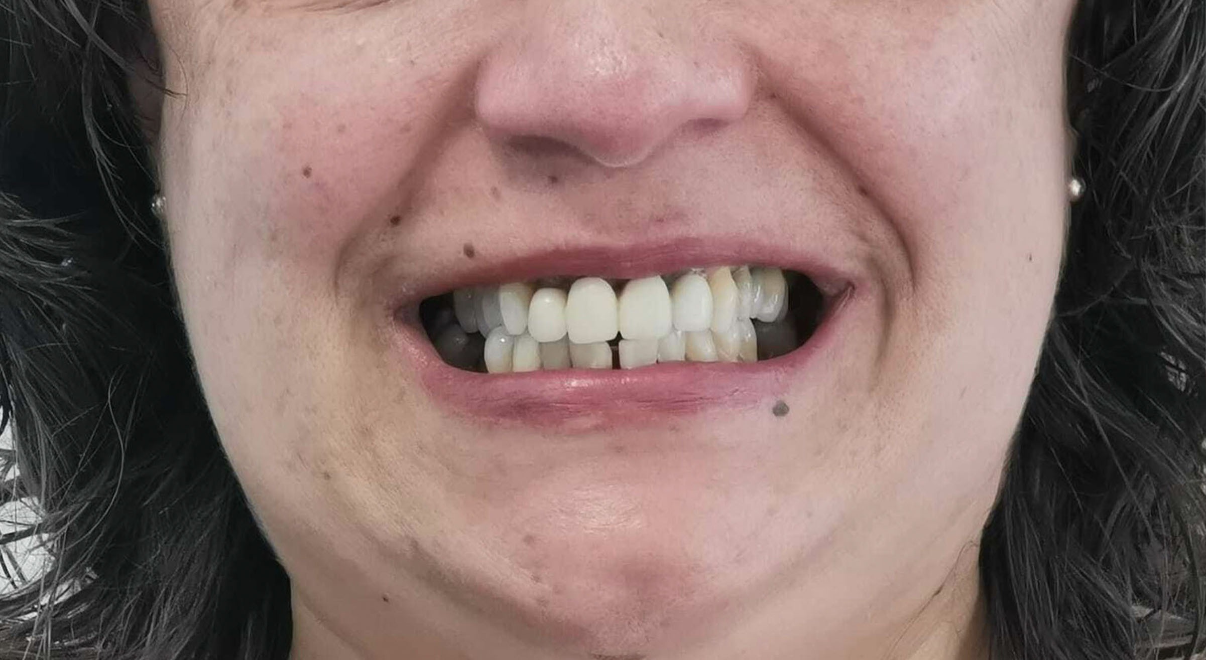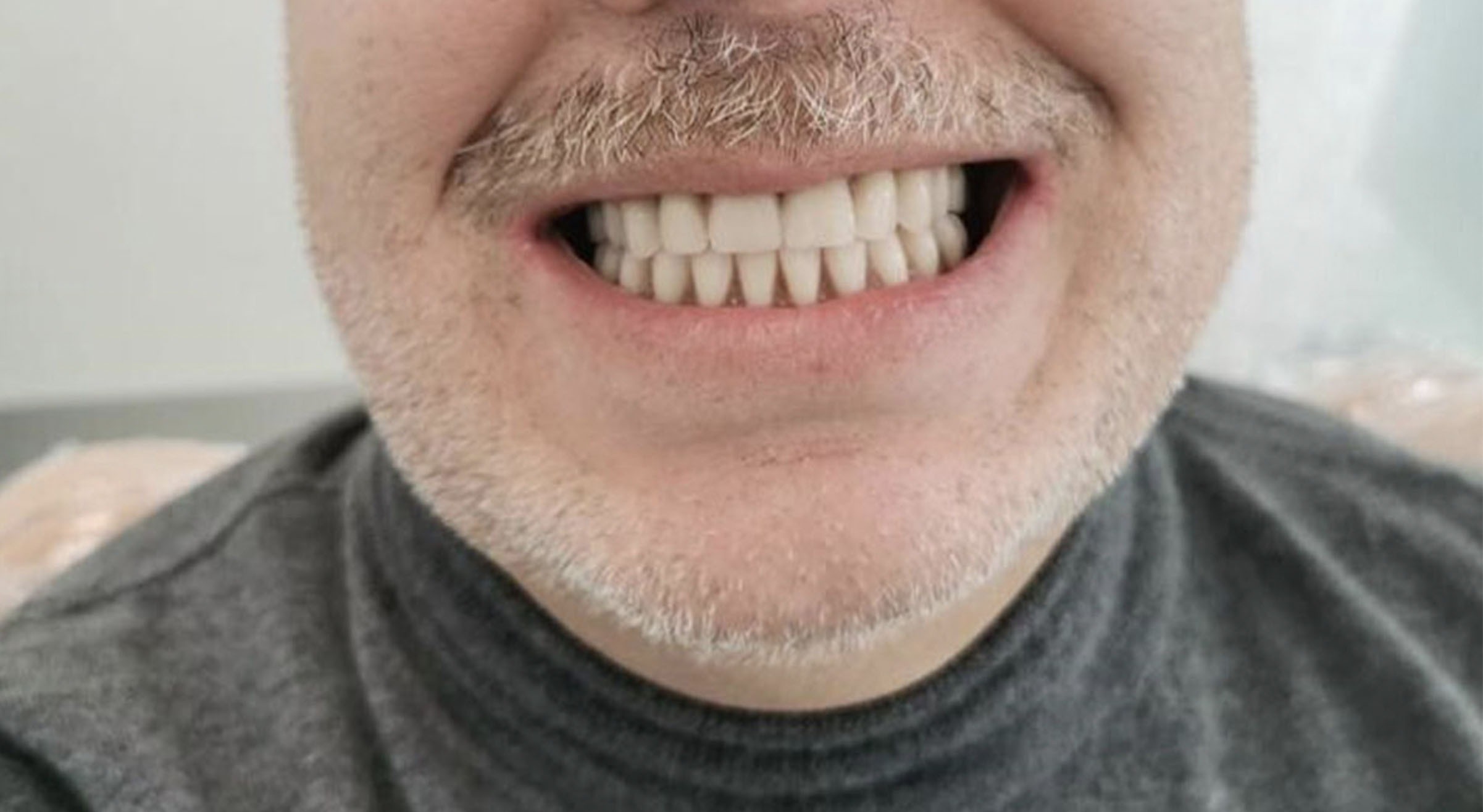 Próteses dentárias fixa, no maxilar inferior e superior. Tratamento concluído em apenas um dia.